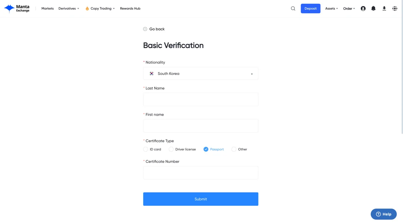 🪪만타 익스체인지(aka. 만타 거래소) KYC(기본, 심화 인증)